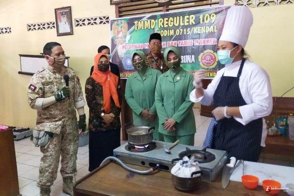 Sinergitas antara TNI dan masyarakat terjalin di arena TMMD Reguler ke -109 Kodim 0715/Kendal di Desa Sendang Kulon, Kecamatan Kangkung, Kendal. Mereka sedang menggelar latihan memasak.