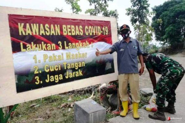 BREBES - Upaya mencegah penyebaran virus corona baik melalui himbauan terus dilakukan oleh jajaran Kodim 0713 Brebes, termasuk di lokasi TMMD Reguler 109, di Desa Kalinusu, Kecamatan Bumiayu, Kabupaten Brebes, Jawa Tengah.