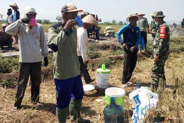 KENDAL-terkininews.com Lokasi Pengecoran jalan ke Pantai pening melewati hamparan persawahan yang hampir tidak ada pohon besar di sepanjang jalan juga terik matahari siang jelas sangat panas di TMMD reguler ke-109 Kodim 0715/Kendal .