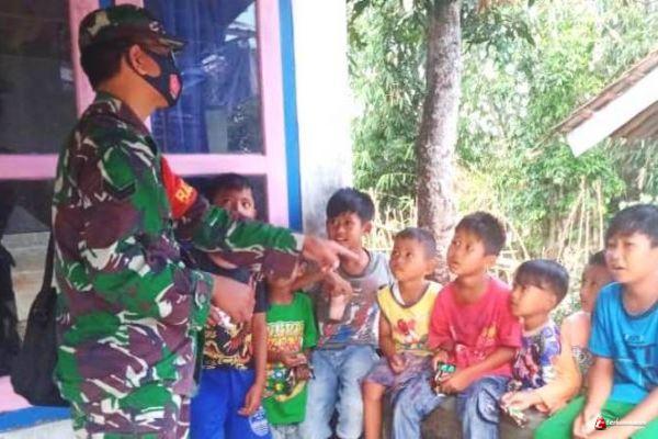 Anggota Satgas TMMD Reguler Brebes Tanamkan Nasionalisme ke Anak Desa