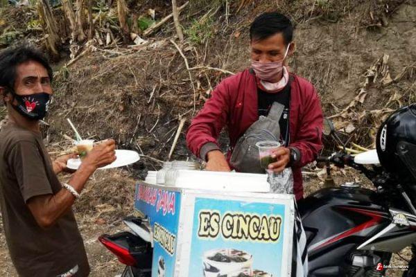 BREBES – Momen hadirnya ratusan anggota Satgas TMMD Reguler 109 Kodim 0713 Brebes, di Desa Kalinusu, Kecamatan Bumiayu, Kabupaten Brebes, Jawa Tengah, tidak disia-siakan oleh Amirul (30), seorang pedagang es cincau keliling asal desa tetangga di wilayah Kecamatan Bantarkawung, Desa Pengarasan.