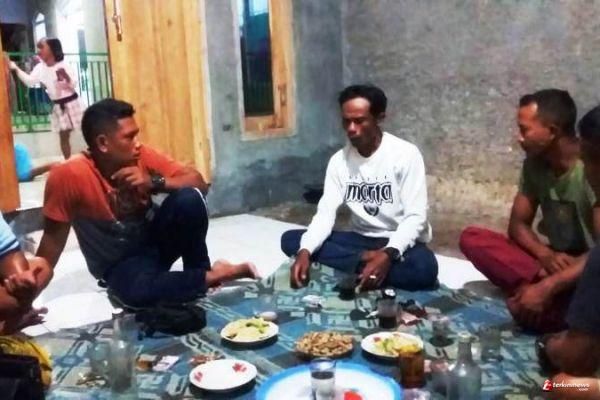 Tampak Serda Fauzan (kaos merah marun), anggota Tim Teknisi Bangunan Kodim Brebes, sedang bersilaturahmi ke kediaman Ridho (31), salah satu warga Dukuh Glempang RW. 06, Kalinusu. Kamis (24/9/2020).