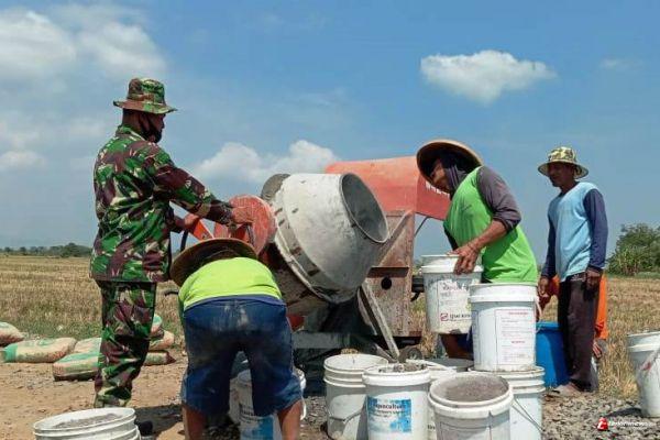 Satgas TMMD Reguler ke 109 Kodim 0715/ Kendal bersama warga masyarakat saling bahu membahu melaksanakan pengecoran jalan di Desa Sendang Kulon Kecamatan Kangkung Kabupaten Kendal.