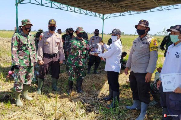 Camat Kangkung Bagikan Seribu Masker di Lokasi TMMD
