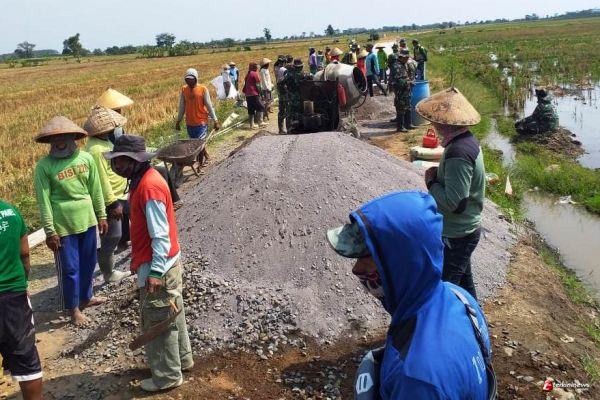 KENDAL- terkininews.com Semangat dan kompak rasa kebersamaan yang dilakukan oleh anggota Satgas TMMD Manunggal Membangun Desa (TMMD) Reguler Ke-109 Kodim 0715/Kendal di Desa Sendang kulon,Kecamatan Kangkung,pengerjaan pembangunan fisik berupa jalan beton terus di genjot.