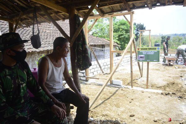 Lebih lanjut dijelaskan Danki Satgas Pra TMMD Kapten kapten Chb Suroso, rumah saat yang lain ada yang tinggal finishing saja, maka anggota Satgas yang bertugas di dua rumah tersebut sebagian kita geser untuk merehap rumah bapak tumiadi.