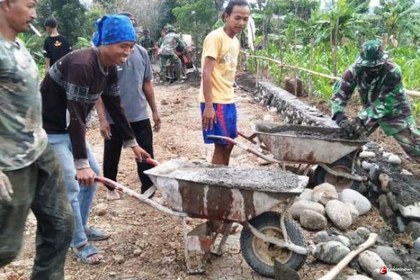 Semakin Solid TNI dan Warga Kalinusu Brebes di Lokasi TMMD Reguler