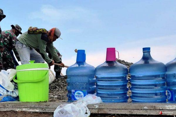 Puluhan galon berisi air minum didrop setiap harinya di lokasi pengecoran jalan sasaran fisik TMMD Reguler ke 109 Kodim 0715/Kendal Tahun Anggaran 2020 di Desa Sendang Kulon Kecamatan Kangkung Kabupaten Kendal.