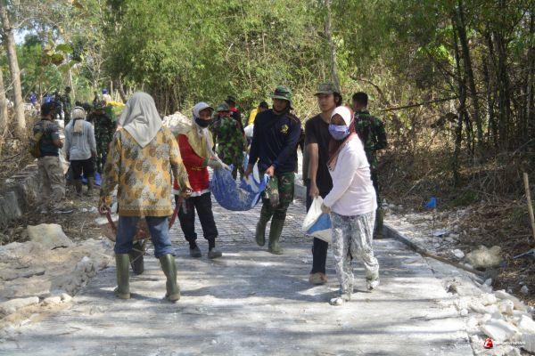 Warga Tebluru Kompak Bantu Satgas TMMD ke 109 Kodim 0812/Lamongan Bangun Jalan Penghubung Desa