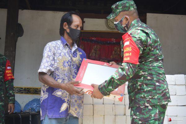 LAMONGAN -Dansatgas TMMD 109 Kodim 0812 Lamongan letkol Inf Sidik Wiyono,S.H., M.Tr. Han Di dampingi Kepala Desa Dan Sekertaris Desa memberikan Bantuan Sembako dan Keramik Bantuan Dari Komandan Korem 082/CPYJ Kepada Sasaran RTLH TMMD 109.