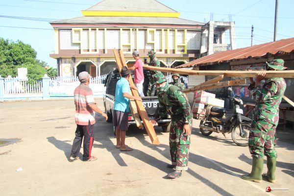 LAMONGAN – bekerja dengan semangat itu yang di lakukan Personel Satgas TMMD ke-109 Kodim 0812/lamongan Dalam memanggul kayu reng untuk pembuatan atap rumah isolasi di Desa Tebluru Kecamatan Solokuro.