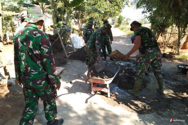 Tak Hanya Handal Berperang,Satgas TMMD Juga Piawai Mencampur Adonan Cor Beton