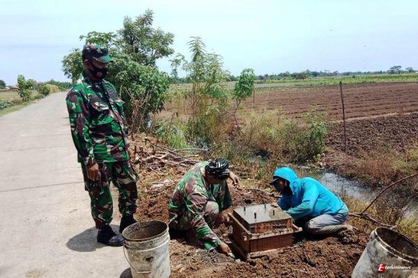 Satgas Tentara Manunggal Membangun Desa (TMMD) reguler ke 109 desa sendangkulon bersama warga secara terus menerus melaksanakan pengerjaan rabat beton jalan penghubung antara Desa Sendang kulon dan kampung pening.