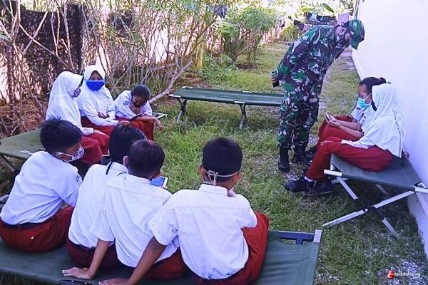 Pelda Joko mengatakan, sering dan acao kali, anggota Satgas TMMD datangi anak anak sekolah untuk belajar bersama menggunakan dalam jaringan(Daring).