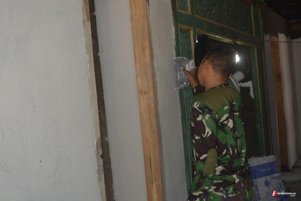 Cekatan, Anggota Satgas TMMD 109 Plamir Dinding Rumah Pak Soleh