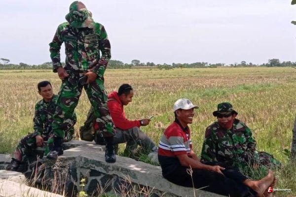 Seperti yang dilakukan oleh Kapten inf Sardi di waktu jeda istirahat dalam pembuatan rabat beton disempatkan bercanda dengan pak RT Bambang warga desa sambil berteduh dan melepas lelah