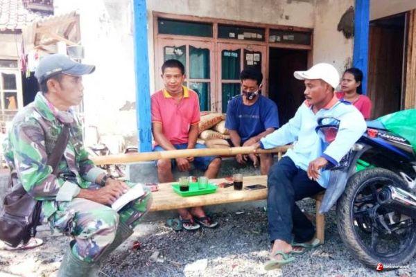 Tampak Peltu Maulana, Kepala Tim Teknisi Bangunan Kodim Brebes, sedang berkoordinasi dengan para tukang bangunan warga setempat, untuk membagi tugas pekerjaan. Sabtu (3/10/2020).