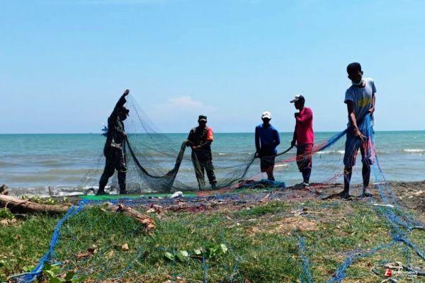 Satgas TMMD Bantu Nelayan Pasang Jaring