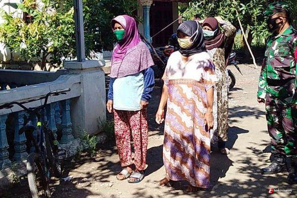 prajurit satgas ,Sersan Satu Tri Juni.S,dengan tanggap,segera menghampiri ibu - ibu, dengan ciri kas senyum sapa salamnya,segera melakukan pendampingan dan mengantar sampai tujuan pelayanan posyandu. (Pendim 0715/Kendal)Anto.