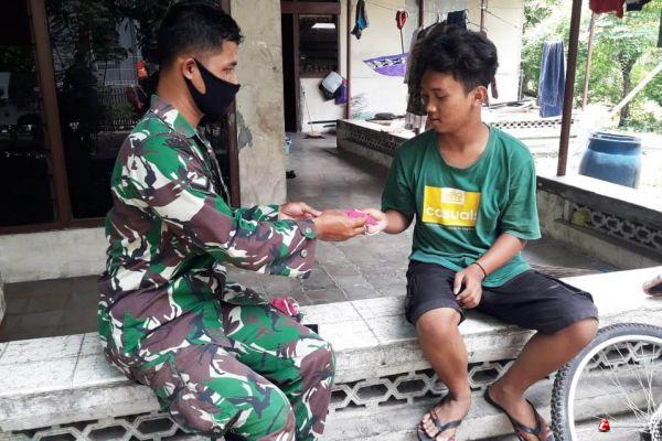 ''Warga terus kami wanti-wanti untuk selalu menggunakan masker kalau keluar rumah, cuci tangan menggunakan sabun, jaga jarak serta harus mengikuti aturan protokol kesehatan lainnya,'' ungkap Serda Mardanto.