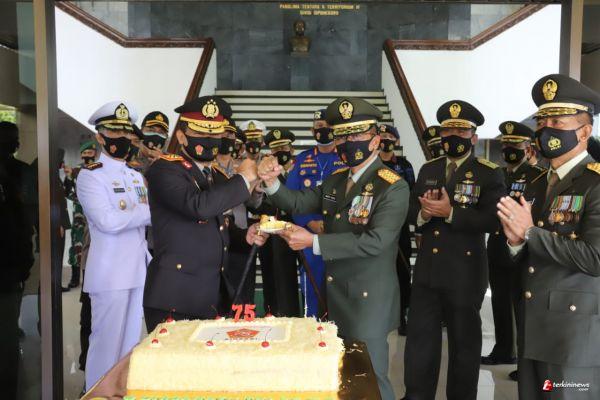 Dalam Kesempatan tersebut Kapolda Jateng Irjen Pol Ahmad Luthfi memberikan Kue Ulang Tahun Kepada Pangdam IV Diponegoro dilanjutkan menghadiri Upacara Peringatan HUT Ke-75 TNI Tahun 2020 secara Virtual langsung dari Istana Negara di Makodam. Senin, (5/10/2020), Pukul 08.00 WIB.