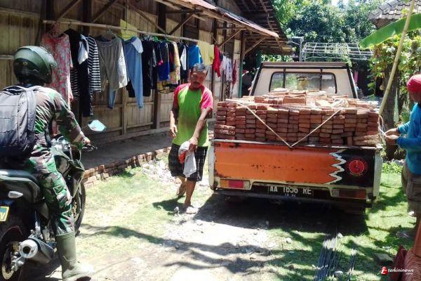 Menurut Babinsa Serka Nasikoen, untuk mengejar target rehab rumah Harni, kendaraan angkut material batu mata pun keluar masuk ke lokasi itu.