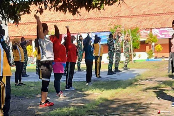 Yakni, sebelum berangkat ke lokasi pengecoran jalan maupun rehab RTLH, para TNI anggota Satgas TMMD itu, bersama perangkat desa dan warga setempat melakukan senam pagi bersama.