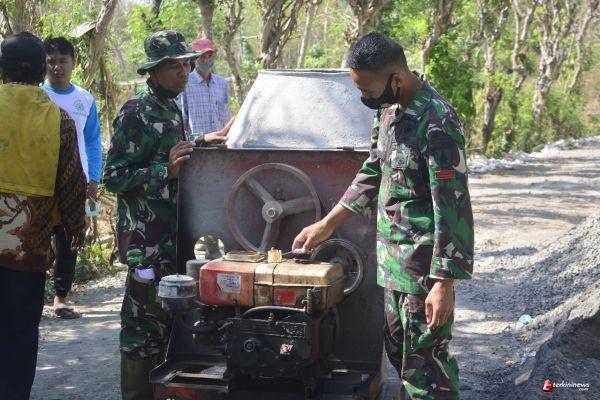 Suara mesin sudah nampak terdengar bergemuruh. Mesin molen yang digunakan untuk membuat adonan semen berputar mengikuti irama pasir dan semen. Tak henti-hentinya, para TNI dan warga yang sedang membuat adonan jenangan memasukkan bahan-bahan material berupa pasir, koral dan semen ke dalam mesin. Mereka nampak saling bekerjasama bahu membahu demi terselesainya pekerjaan tersebut sehingga dapat selesai tepat waktu seperti yang diharapkan.