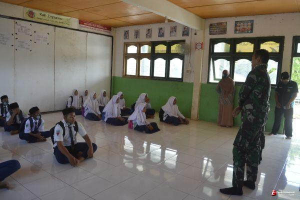 “dengan memberikan wasbang kepada siswa dalam program TMMD ini tentu diharapkan mereka dapat mengerti dan memahami apa yang telah diberikan, sehingga mereka dapat berguna bagi nusa, bangsa, negara dan agama, karena keempat unsur ini sangat berkaitan,” kata Kopda Zaenurul, Senin (28/9/20).