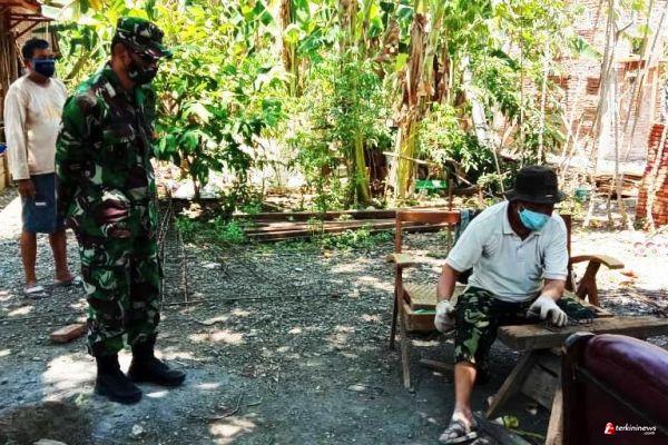 Kepada warga desa sasaran, Moh Rondhi (56) Serda Nanang secara detail berbagi ilmunya di bidang pembesian pembangunan rumah.