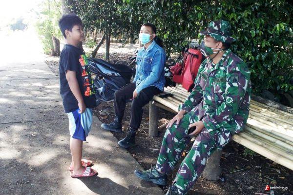 Tak Pernah Bosan Himbau Anak-Anak Desa Sasaran TMMD Untuk Memakai Masker