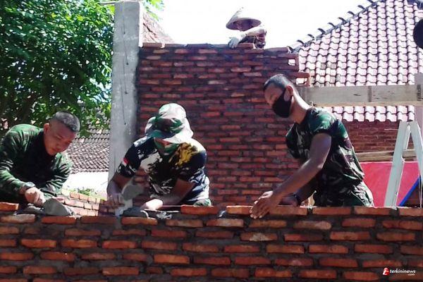 Para anggota Satgas TNI Manunggal Membangun Desa (TMMD) Reguler 109 Kodim 0715/Kendal dan warga Desa sasaran , Desa Sendang Kulon, Kecamatan Kangkung, Kabupaten Kendal, Jawa Tengah, terus kompak saat merehab RTLH yang merupakan salah satu sasaranfisik TMMD.