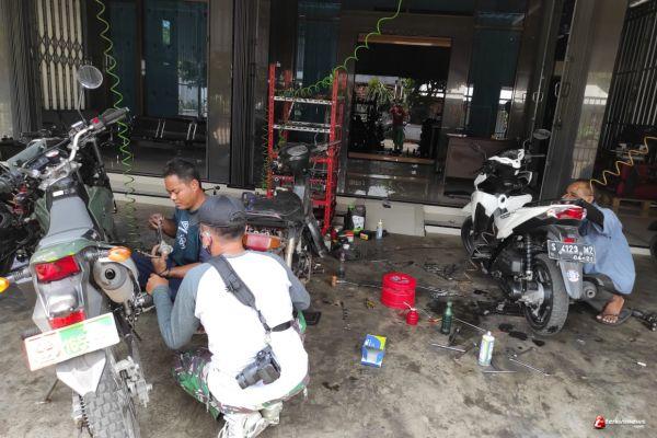 Jalan yang sedikit berbatu dan memiliki kepadatan tanah kurang baik membuat salah satu kendaraan operasional tim dokumentasi harus masuk ke bengkel.