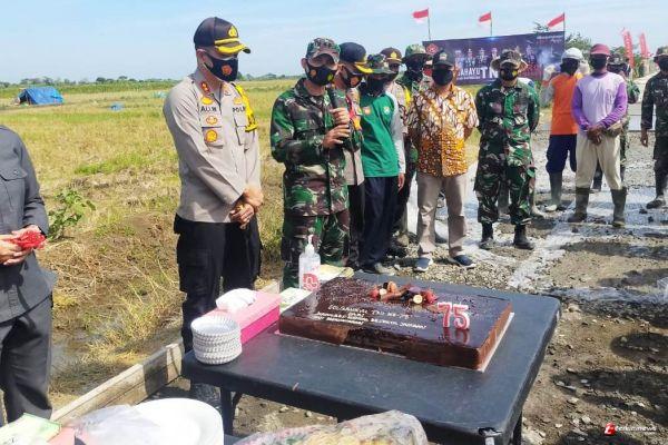 Tak hanya itu, kue ulang tahun HUT TNI ke-75 juga diberikan secara