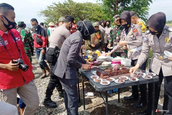 pemotongan tumpeng yang diserahkan kepada Dansatgas TMMD serta