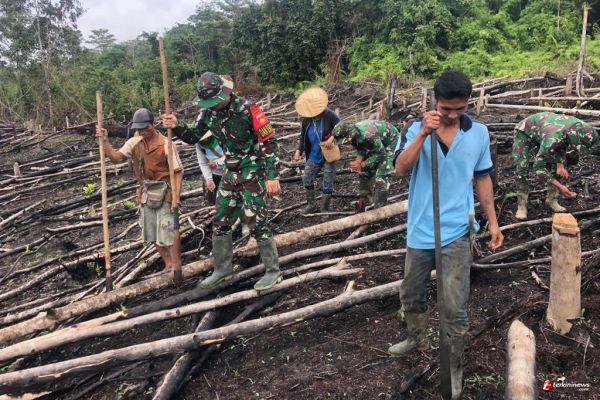 "Guna menumbuhkan hubungan yang harmonis dengan masyarakat, Pos Sei Beruang ikut ambil bagian dalam tradisi Nugal yaitu membantu proses penanaman padi yang ada di wilayah binaanya," ucap Dansatgas.