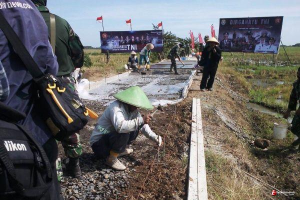 Satgas TMMD reguler ke-109 Kodim 0715/Kendal dan warga mencermati dengan seksama dalam pemasangan begisting untuk kegiatan sasaran fisik pengecoran jalan sepanjang 1.200 meter lebar 3 meter dan tebal 12 centimeter.