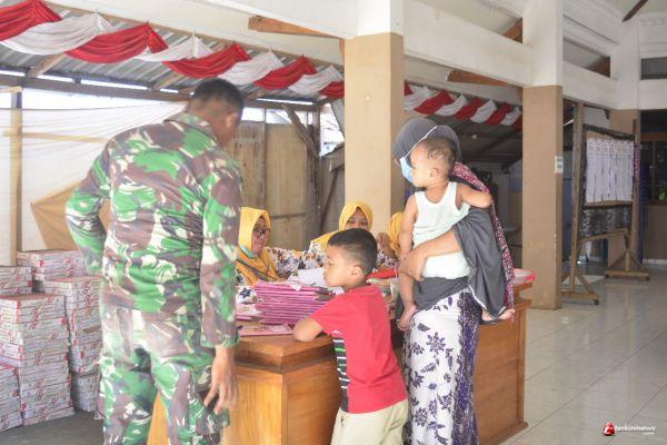Dalam kegiatan tersebut, Prada Nofen Cahyono yang merupakan salah satu anggota Satgas TMMD dengan setia mendampingi dan membantu Ibu-ibu warga Desa Tebluru dalam pelaksanaan imunisasi.