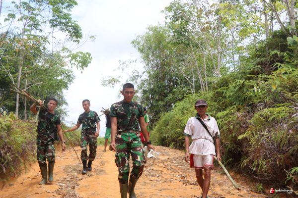 Sambut Kedatangan Dansatgas TMMD 109 Kodim Sintang, Warga Bersama Satgas TMMD Siapkan Umbul Umbul
