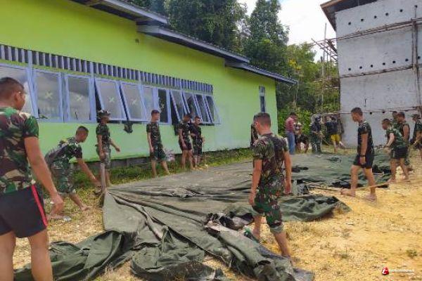 Tampak terlihat, beberapa anggota Satgas TMMD 109 Kodim Sintang yang sedang mendirikan posko di lokasi sasaran kegiatan TMMD Reguler 109 Tahun Anggaran 2020 Kodim Sintang. Bahkan, terlihat anggota Satgas TMMD 109 Kodim Sintang yang sedang membentangkan tenda. (1205/Sintang)