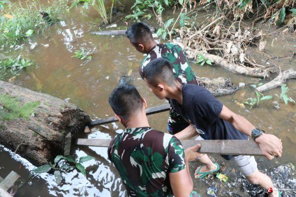 SINTANG - Sejumlah Satgas TMMD 109/Sintang, melakukan pembersihan sejumlah selokan dari banyaknya sampah. Tujuannya jelas, agar aliran sungai menjadi lancar dan tidak menimbulkan luapan air yang bisa menggenangi jalan-jalan desa.