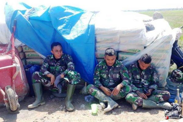 Disaat istirahat kerja TMMD, anggota satgas TMMD mengisi waktu istirahat siang di lokasi sasaran fisik pengecoran jalan sepanjang 1200 meter itu, dengan bercanda dengan rekan –rekanya. Juga dengan warga de saran.