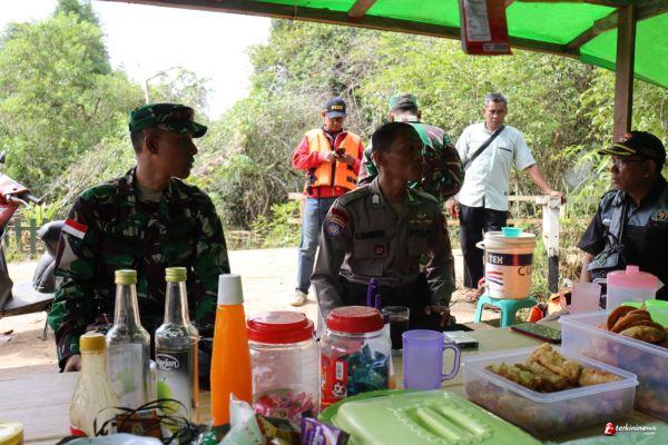 Dansatgas Letkol Inf Eko Bintara Saktiawan bersama Bhabinkamtibmas Bripkas Suwandi tampak menikmati suguhan makanan dan minuman dari masyarakat saat singgah untuk beristirahat.
