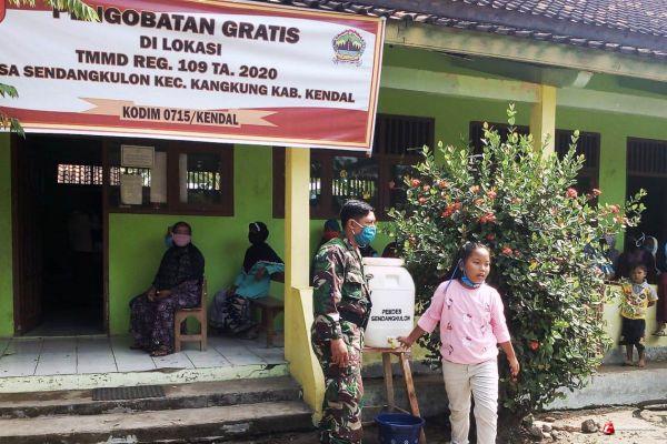 Dalam kegiatan itu Satgas menggandeng personil dari Klinik Pratama Kodim 0715/Kendal, Pelayanan kesehatan gratis itu digelar di Dusun Pening Desa Sendang kulon Kecamatan Kangkung. Tepatnya di SDN 4 Sendang kulon. Sala seperti kegiatan fisik dan non fisik TMMD lainnya, di kegiatan pengobatan gratis itu Tni Satgas juga menerapkan protokol Covid-19 secara ketat .