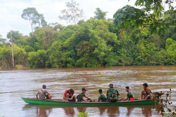 Gunakan Perahu, Satgas TMMD 109 Kodim Sintang Lewati Sungai Ketungau Menuju Lokasi Kegiatan
