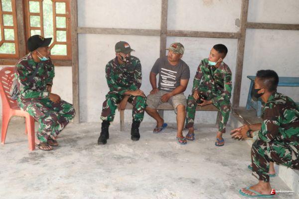 SINTANG - Anggota Satgas TMMD 109 Kodim 1205/Sintang mengunjungi salah satu rumah warga untuk mengisi waktu luangnya pada Selasa (29/09/2020).