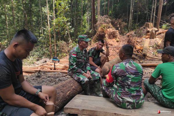 Korlap Satgas TMMD 109/Sintang Lakukan Koordinasi Dengan Anggota Satgas TMMD Ditengah Hutan RimbaÂ