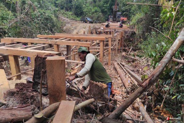 Petrus, Sosok Dibalik Hasil Kayu Yang Dibutuhkan Dalam Pembangunan TMMD Di Desa Tirta Karya