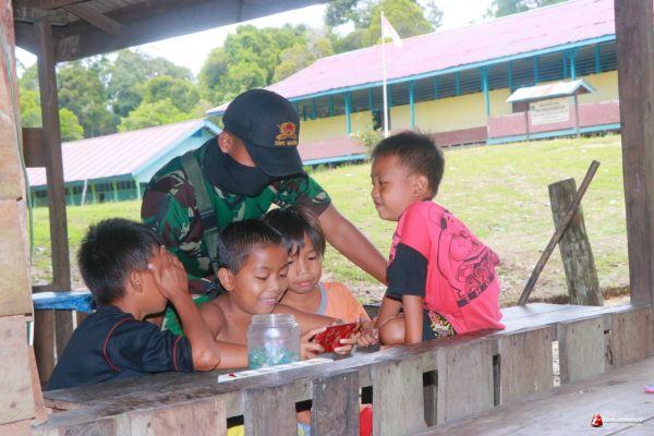 SINTANG - Prada Cristopal yang merupakan Anggota Satgat TMMD 109/Sintang adalah penyuka anak kecil.
