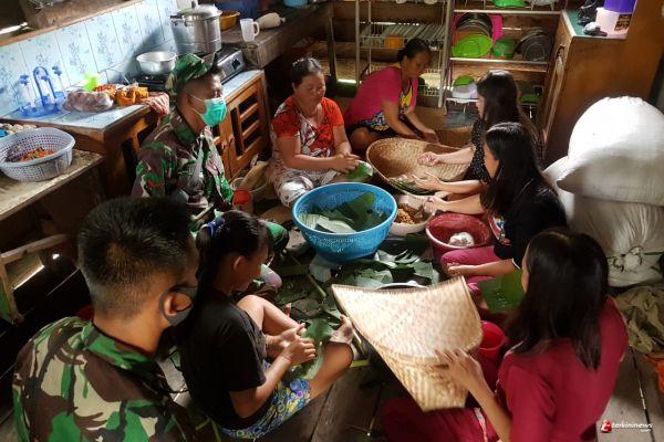 Sambut Acara Nugal, Anggota Satgas TMMD Bersama Warga Siapkan Makanan Tradisional